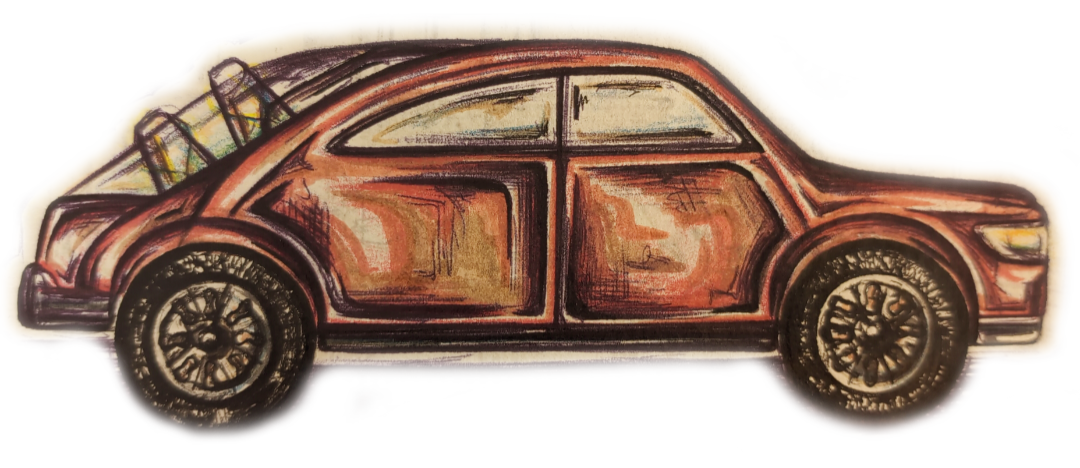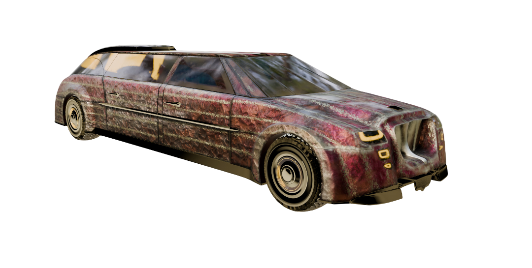 Das erste Asset ist eine Limousine, deren Karosserie an eine Erdnussschale erinnert. Diese Idee hatte ich schon im Kopf, lange bevor ich überhaupt daran dachte, ein größeres Projekt daraus zu machen. Damals fertigte ich zwei Skizzen eines pinkfarbenen Autos an, das mit Erdnussöl betrieben wird