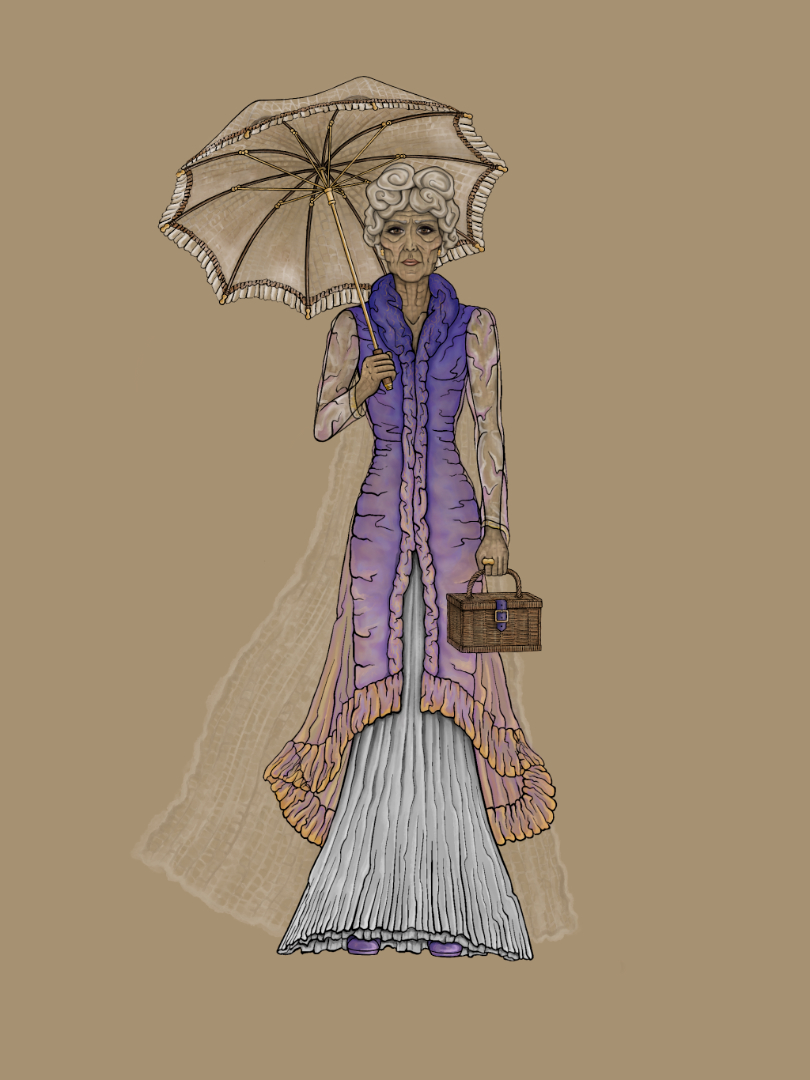 Das ist der Charakter, der die Erdnuss-Limousine steuert. Sie sieht fast menschlich aus, abgesehen von ihrer Haut, welche die Struktur einer Erdnussschale aufweist. Ihre gesamte Erscheinung ist elegant und ein klein wenig steif. Sie trägt eine geflochtene Korbtasche bei sich sowie einen Schirm, um sich vor der Wüstensonne zu schützen.
