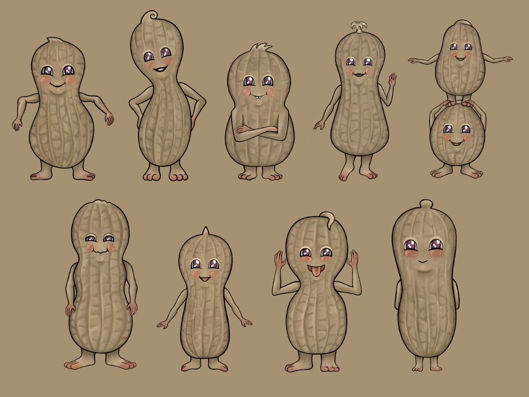 Um eine der Erdnusskreaturen zum Leben zu erwecken habe ich Peat modelliert und anschließend mit Substance Painter texturiert. Nachdem ich das statische Modell geriggt hatte konnte ich diese kleine Winkanimation rendern.